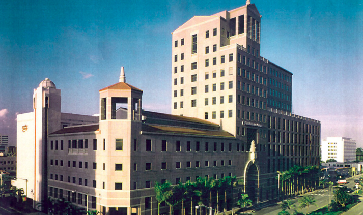 New 13-story, 315,000 sf building adjoining the existing 5-story in Coral Gables. The former Southern Bell offices have undergone extensive rebuilding and expansion. Only the exterior portion of the structural frame of the existing building remains; the rest was completely rebuilt. The adjacent new construction provided office space plus 10 levels of parking for 420 cars.