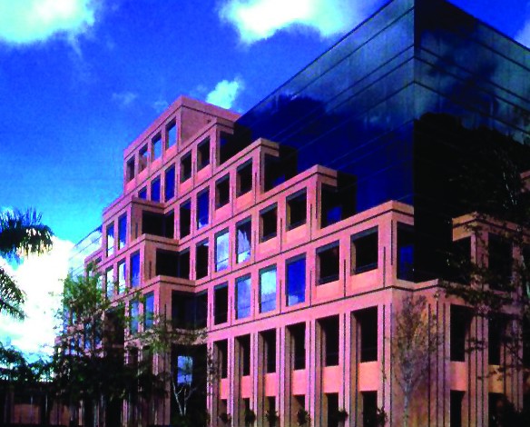 Two, 6-story office buildings totaling 240,000 sf office space, and two, 4-level parking structures totaling 281,400 sf for 804 cars. The top level of the parking structures is designed as a landscaped plaza that includes a covered walkway serving the office floor.