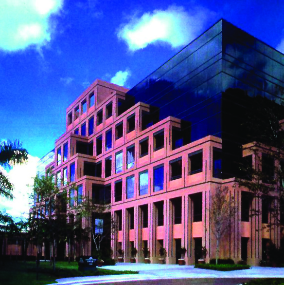 Two, 6-story office buildings totaling 240,000 sf office space, and two, 4-level parking structures totaling 281,400 sf for 804 cars. The top level of the parking structures is designed as a landscaped plaza that includes a covered walkway serving the office floor.