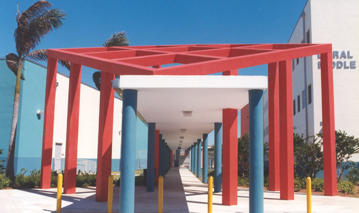 The project is a design-build, 1,300-student station, middle school for Miami-Dade County Public Schools. Several 1-story buildings are interconnected and enclosed, and are designed as Enhanced Hurricane Protection Areas (EHPA). The 3-story building houses classrooms and administration. The site of the project was required to be demucked by about 2 feet.