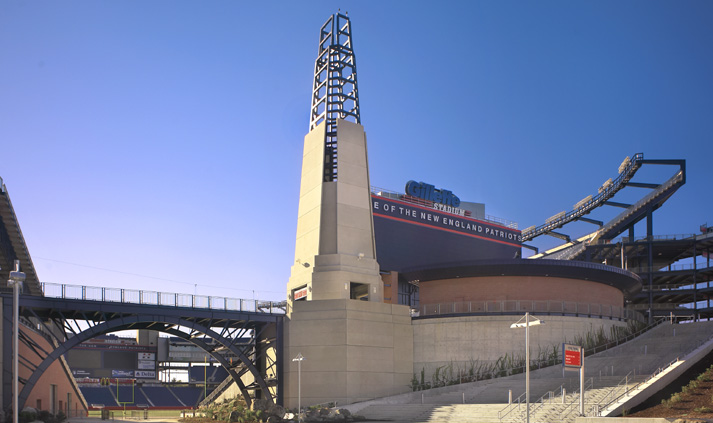 Gillette Stadium is a 68,000 seat NFL stadium built for the New England Patriots. The design/build project includes 80 luxury suites seating 2,000 and 6,000 club seats. The stadium, which opened on August 17, 2002, is recognized by the bridge and lighthouse feature at the north entrance.