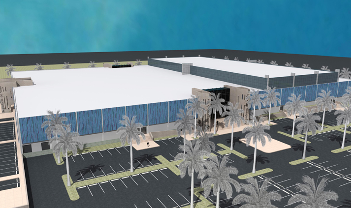 This project is the conversion of a 200,000 square foot existing building into a mega church with a 10,000 seat sanctuary with stadium seating, classrooms, offices, and workshop spaces. In the sanctuary almost all of the existing columns are removed and the roof height nearly doubled, facilitated by deep, long-span custom steel trusses spanning 150 feet. The project will introduce 35,000 square feet of office and classroom mezzanines into the building. Three new grand entrances are cut into the existing façade.