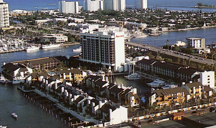 Directly on the Intracoastal Waterway, the 572-room Marriott hotel boasts a private marina with slips for 100 sea vessels. The hotel’s 13 stories, surrounded by a private villa development, afford a panarama of Fort Lauderdale’s network of ocean and waterway views. Keeping with the Florida nautical motif are exposed wooden beams in the hotel’s River Watch Restaurant and other public areas. Outside landscaping extends the natural environment atmosphere.