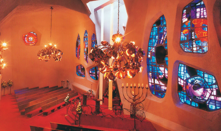 Design and construction of the Chapel was a free-flowing, sculptured, sprayed concrete that presented many challenges. With the design of irregular curves and facets there were no architectural plans, just detailed sketches. The project was constructed prior to computers and 3D programs. We needed to provide a tangible vision so we built a scale, thin-wire model as a guide of the steel cage that was to fit within the concrete shell.