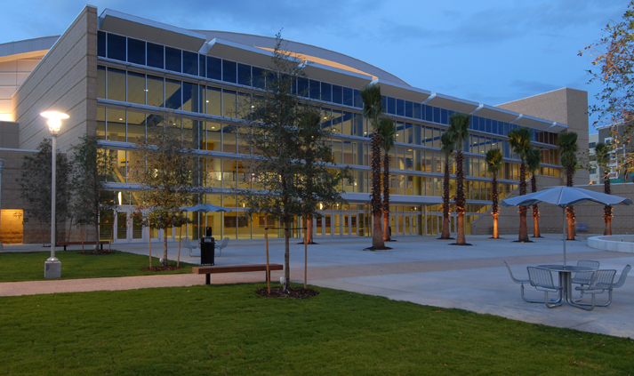 The 10,000-seat Convocation Center is home to UCF’s Golden Knights Basketball team. The arena will also host commencement ceremonies, concerts and a variety of other entertainment programs. The Convocation Center includes 18 luxury suites, 500 club seats, and 64 loge box seats. Design features of the convocation center include a cafeteria, a kitchen that can provide catering services for events, concession stands, retail spaces, and a state-of-the-art sound system to appeal to entertainment acts. The convocation center doubles the seating capacity of the existing Arena, which is renovated to become a 2,500-seat arena for volleyball matches and other events.
